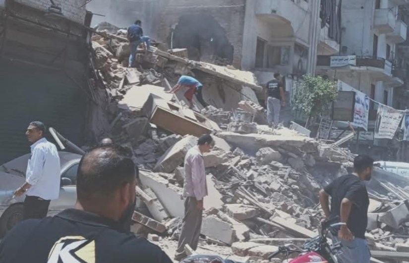 بداية واقعة انهيار عقار شبرا مصر بالكامل